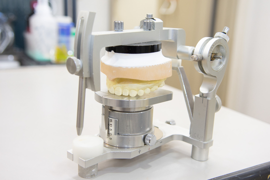 YTプレートとは、お一人おひとりの患者さまに合わせて作製する、オーダーメイド型の就寝用マウスピースです。噛み合わせ専門の歯科技工士が、患者さまの噛み合わせのズレを見極め、正しい位置へ導くように計算してこれをお作りしています。